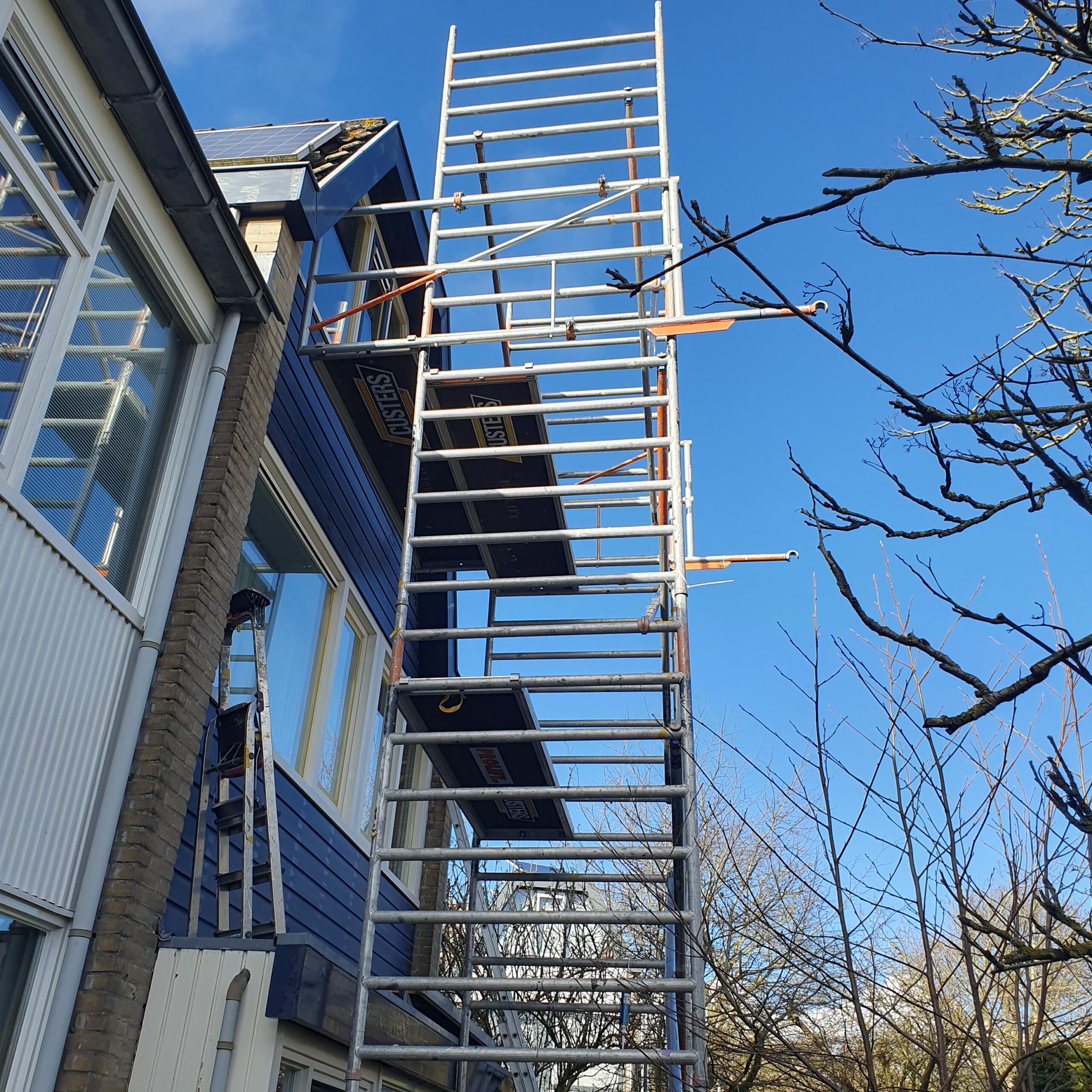 We werken uitsluitend met professioneel klim materiaal. zowel met steigers als hoogwerkers.